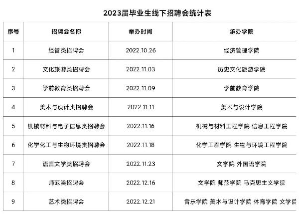 2022年秋季学期校园招聘采用线上与线下相结合的方式开展,线下招聘会详见下表。