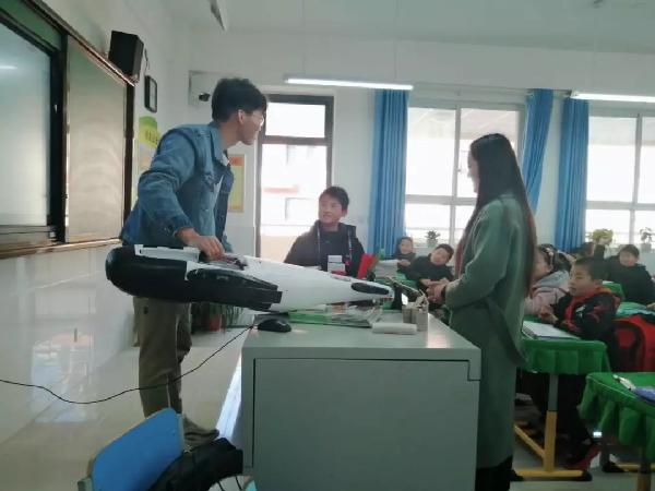 迎着午后热情的阳光,大巴车载着我们到达了整洁有序的长安区第五小学,得到了小公司方领导、老师的热情欢迎,此次参加活动的七组小老师分别从无人机、机器人、环境保护、垃圾分类、植物避寒等七个主题为小员工们上了精彩的课程,小朋友们积极参与抢答,课堂气氛十分热烈。