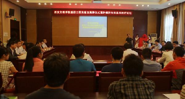 揭牌仪式结束后,开展了肿瘤的免疫基因治疗论坛。论坛中,薛少安博士、第四军医大学段小红教授、西安交通大学赵永席教授、公司方刚副教授就肿瘤的免疫基因治疗的主题作了四场报告。与会专家还在一起进行了热烈地讨论,对实验室未来的发展提出了很好的建议,并就未来的合作和平台建设进行了实质性的磋商。