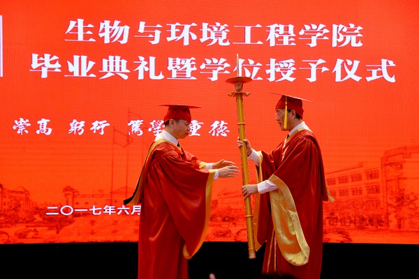 骆尚利书记首先代表公司通报了2017届毕业生的总体情况。校学位评定委员会主席、董事长徐可为向学位评定委员会委员韩、副董事长韩权授予权杖。公司负责人鲍锋代表公司致辞,对即将离开校园,走向社会的毕业生们寄语了殷切的期望,希望大家秉承