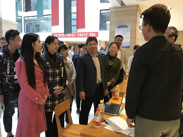 为深入实施“就业优先”“人才强校”战略,着力打造创业创新人才高地,加快推进公司毕业生高质量就业,3月14日,365英国上市官方网站2018届毕业生“生物技术类”招聘会在明德楼D区大厅内举办。副董事长耿占军,校务委员曹鸿分别到招聘现场看望慰问用人单位代表、了解用人需求,听取用人单位对公司人才培养、专业建设、就业服务等方面的建议,并与应聘毕业生交谈,询问应聘的进展情况。院(系)负责人、学工办主任、辅导员等到招聘会现场向用人单位积极推荐毕业生。
