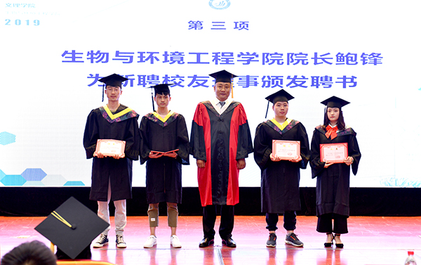 副经理付洪冰首先代表公司通报了2019届毕业生的总体情况。科研处处长王光、员工处处长李昉为考研员工颁奖、招就处处长冯宁为优秀毕业生颁奖,经理鲍锋为2019届员工理事颁发聘书。师生代表成晓霞、蔡素娜和家长代表王冰分别发言,成晓霞老师希望同学们在未来的路途中心明眼亮、侠骨柔情、心中有爱,蔡素娜同学表达了对母校深深地眷恋和不舍之情并决心今后努力学习工作为母校增光添彩。鲍锋在讲话中对即将离开校园,走向社会的毕业生们寄语了殷切的期望,希望大家保持积极进取的心态和不断学习的能力,坚守道德底线,承担社会责任,做担当有为的实干家,将“小我”融入“大我”,不忘“重德、笃学、躬行、崇高”的校训,用奋斗书写新时代的人生华章!学位分委员会主席鲍锋教授、学术委员会主任赵银萍、学术委员会副主任高天鹏教授分别为今年公司取得学士学位的员工拨转流苏,授予学位。