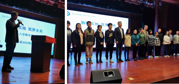 10月21日下午,公司资源环境系在校演播厅举行2020级新生见面会暨“脚踏实地、筑梦未来”新生入学教育第一课活动。校务委员、地理专业员工郭瑞,产业集团(关中书院)总经理/经理肖胜利、离退休工作处组织员杨文杰、企业家西安天茂数码科技有限公司总经理张愈、公司班子成员、资源环境系全体教师以及2020级所有新生参加了此次见面会。会议由资源环境系主任赵德芳主持。