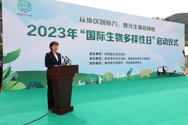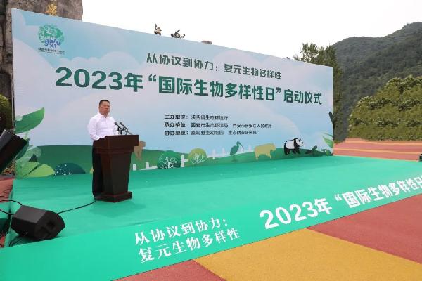 为迎接第23个国际生物多样性日,推动建设人与自然和谐共生的美丽陕西,5月22日上午,陕西省生态环境厅联合西安市生态环境局、长安区人民政府在秦岭野生动物园隆重举办“5·22国际生物多样性日”宣传活动启动仪式。省生态环境厅党组书记、厅长孙丽,西安旅游集团党委副书记、总经理陆飞,生态西安研究院副经理张九东出席仪式,省生态环境厅党组成员、副厅长姚晓军介绍了我省生物多样性保护工作开展情况。