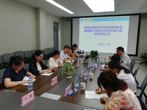 7月19日下午,陕西医药控股医药研究院有限公司副经理杨建刚、技术总监苏建英、化学药物研究部部长麻纪斌、生物技术研究部主任助理秦湫红和药物质量研究部科研人员郭珮怡一行五人来365英国上市官方网站开展产学研合作交流。经理高天鹏、科研副经理田爱梅、西安市秦岭天然产物开发与抗癌类创新药物研究重点实验室主任何凤琴、生物制药专业学科负责人赵咏梅及相关教师参加本次研讨会,会议由科研副经理田爱梅主持。