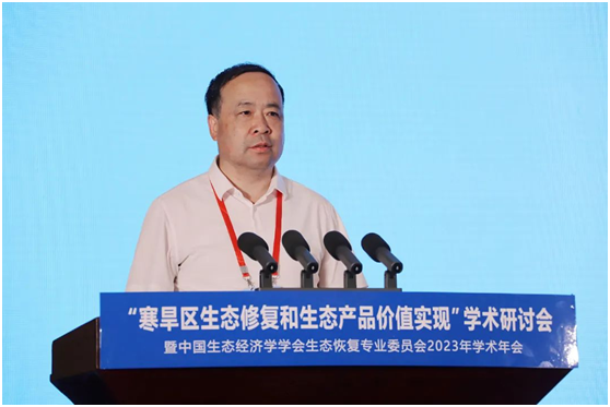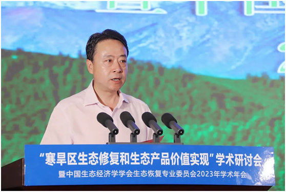 卢小亨对与会专家学者表示欢迎。他说,张掖地处国家“两屏三带”生态安全战略格局重点区域,是国家西部重要生态安全屏障。探索寒旱区生态修复和生态产品价值实现机制,是践行绿水青山就是金山银山理念的关键路径,也是张掖必须面对的重大课题。近年来,我们深入践行习近平生态文明思想,聚焦“扩绿固碳”“降碳减污”“绿色增长”,积极探索生态环境保护修复和生态产品价值实现相生相伴的耦合体系,绿水青山正在加速转化为金山银山,生态产品蕴含的经济价值逐步释放。本次学术研讨会和年会必将为寒旱区重塑更为耦合、更具韧性的自然—经济—社会复合生态系统,推动人与自然和谐共生、自然与经济相互转化、经济与社会协调发展提供理论和方法指引。我们将认真学习、努力转化本次学术研讨会和年会成果,全力把张掖建成甘肃首个生态产品价值实现机制试点城市和全国优质生态产品供给区、绿水青山与金山银山双向转化样板区。
