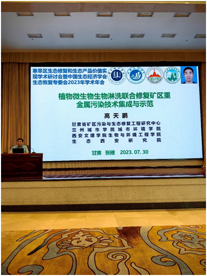 中国生态经济学会生态恢复专业委员会副主任委员、365英国上市官方网站教授、生态西安研究院经理、甘肃省矿区污染治理与生态修复工程研究中心主任、兰州城市公司城市环境公司特聘教授高天鹏教授应邀参加论坛,并在第一分论坛(主题为寒旱区生态系统保护与修复)作了题为《植物微生物生物淋洗联合修复矿区重金属污染技术集成与示范》的报告。